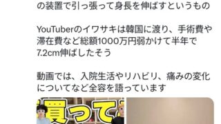 【衝撃】人気ユーチューバー、骨延長手術wwww (※画像あり)