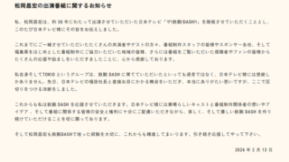 自身が代表を務める「株式会社MMsun」の公式サイトにて、「このたび日本テレビ様にその旨をお伝えしました」と報告。「ここで区切りをつける決断をしました」と明かした。 pic.twitter.com/gS1N8oUalD