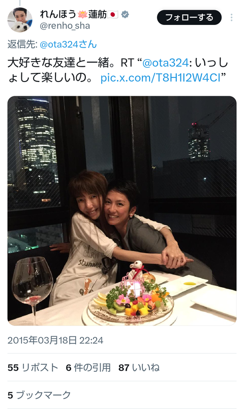 【画像】光代氏と蓮舫さん、マブダチだったwwwwwwwwwwwwwwwwww