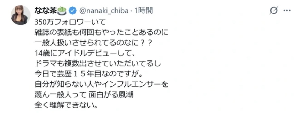 インフルエンサー、一般人扱いにブチ切れするも炎上しちゃったので即謝罪wwwwwwwww Twitter Facebook はてブ LINE コピー 2026.02.16 スポンサーリンク 1:それでも動く名無し:2026/02/16(月) 09:14:17.63 ID:VYWK/KuO0.net 3:それでも動く名無し:2026/02/16(月) 09:20:34.23 ID:srAhFjvh0.net 自分からわざわざ芸能人といって炎上しにいくスタイル 一般人だったら炎上しないのに 続きを読む