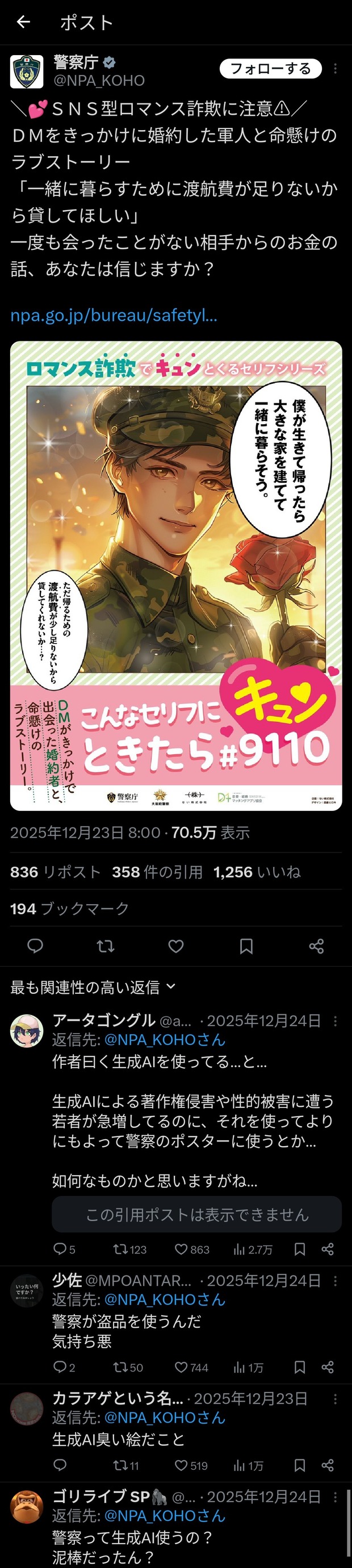 警察庁さん、生成AIがバレて非難されてしまうwww