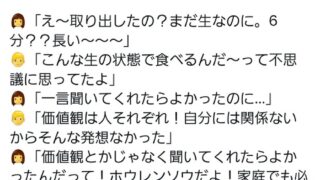 👩「え~取り出したの?まだ生なのに。6分??長い~~~」