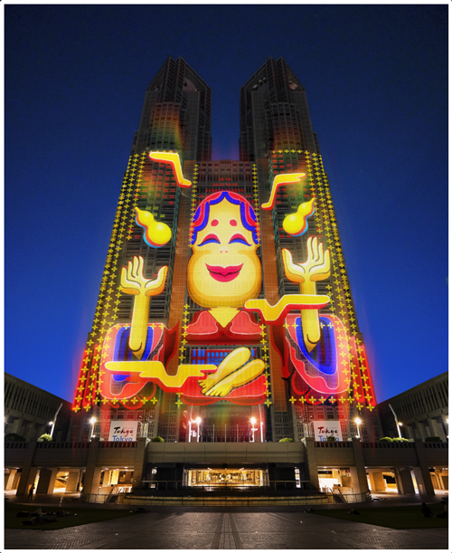 東京都庁舎プロジェクションマッピング2026年最初の作品 和のキャラクターたちが都庁を彩る「東京変容紀」公開!