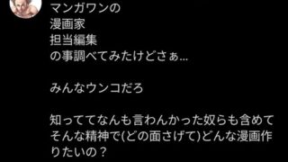 【悲報】嘘喰い作者「マンガワンの漫画家、編集者みんなウンコだろ」 Twitter Facebook はてブ LINE コピー 2026.02.28 スポンサーリンク 1:それでも動く名無し:2026/02/28(土) 14:23:02.93 ID:/BBsOHha0 2:それでも動く名無し:2026/02/28(土) 14:23:28.63 ID:cRgt0LVL0 うんこ食わせだぞ 4:それでも動く名無し:2026/02/28(土) 14:24:18.35 ID:LgcXGPMU0 言うちゃなんやが暇空茜さんにベットして暴れてた漫画家たちが言うのもなぁ 6:それでも動く名無し:2026/02/28(土) 14:24:24.22 ID:yehhr1ao0 小学館の漫画担当っていい話がないな 反社認定してもいいんじゃないの? 続きを読む