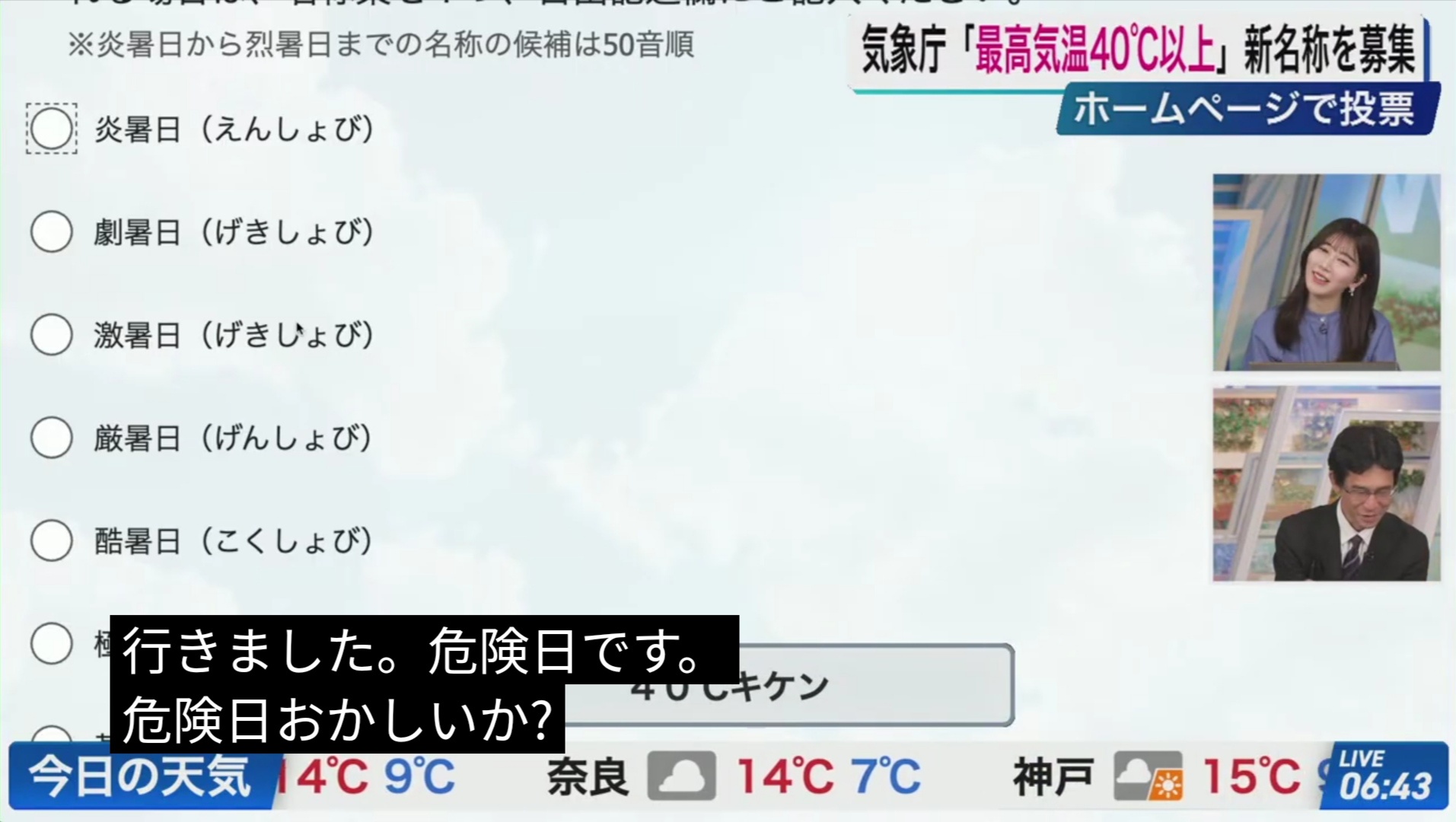 【悲報】ウェザーニュースのお姉さん、40℃以上の新名称に「危険日」と提案してコメ欄激震wwwwwwwww Twitter Facebook はてブ LINE コピー 2026.03.01 スポンサーリンク 1:それでも動く名無し:2026/02/28(土) 13:25:54.73 ID:fTf8RKQd0.net 続きを読む