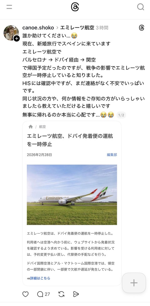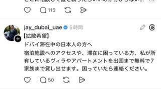 【悲報】富裕層民、ドバイから日本に帰国できない人達で溢れかえるwwwwwwwwwww Twitter Facebook はてブ LINE コピー 2026.03.01 スポンサーリンク 1:以下、?ちゃんねるからVIPがお送りします:2026/03/01(日) 13:49:34.524 ID:x+QfSggGd 2:以下、?ちゃんねるからVIPがお送りします:2026/03/01(日) 13:50:04.468 ID:ZF4tXI1U0 早く帰国しないからこうなる 続きを読む