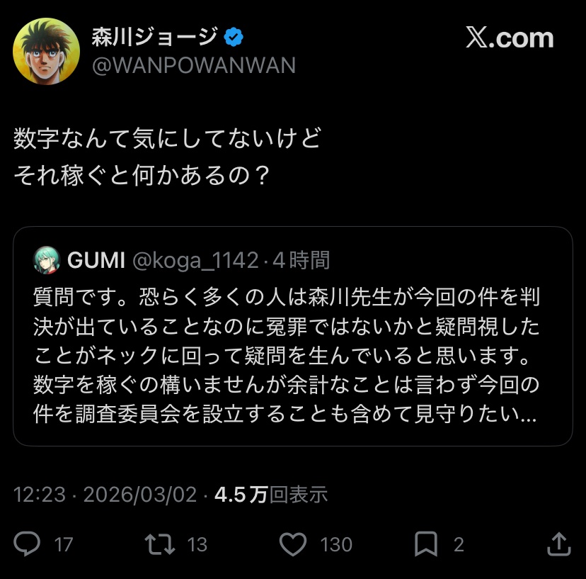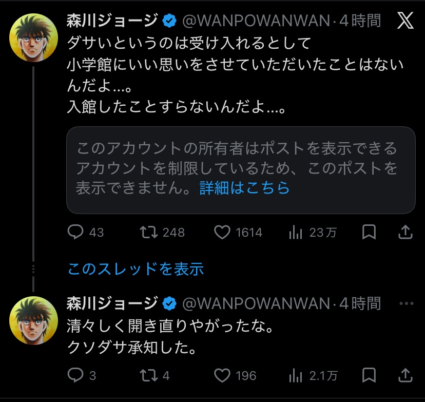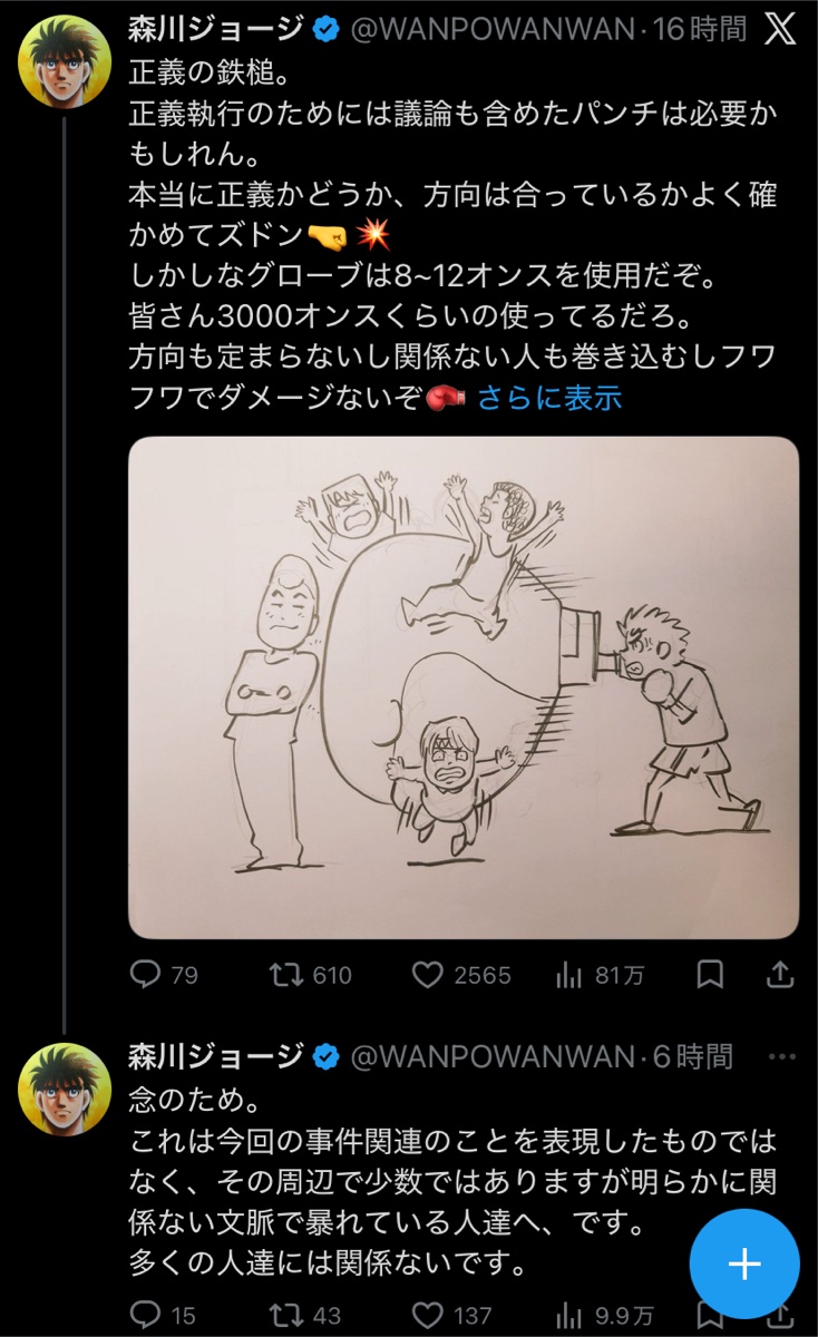 【悲報】マンガワン漫画家JKうんこ食わし事件、何故かはじめの一歩作者がSNSでレスバを開始wwwwwwwwww