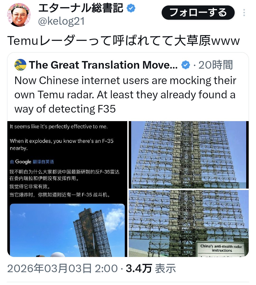 Temuレーダーって呼ばれてて大草原www https://t.co/JPXH8YSILz