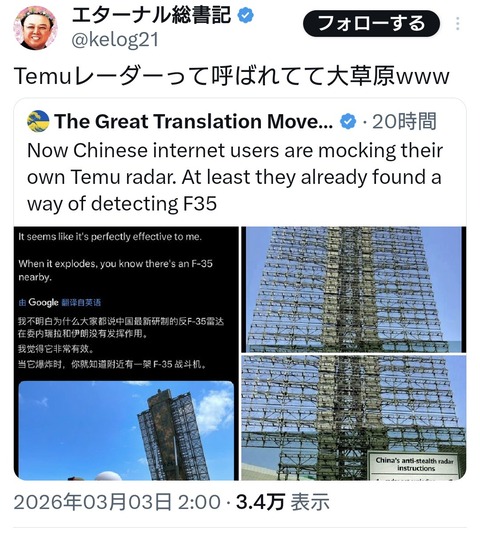 — エターナル総書記 (@kelog21) March 2, 2026