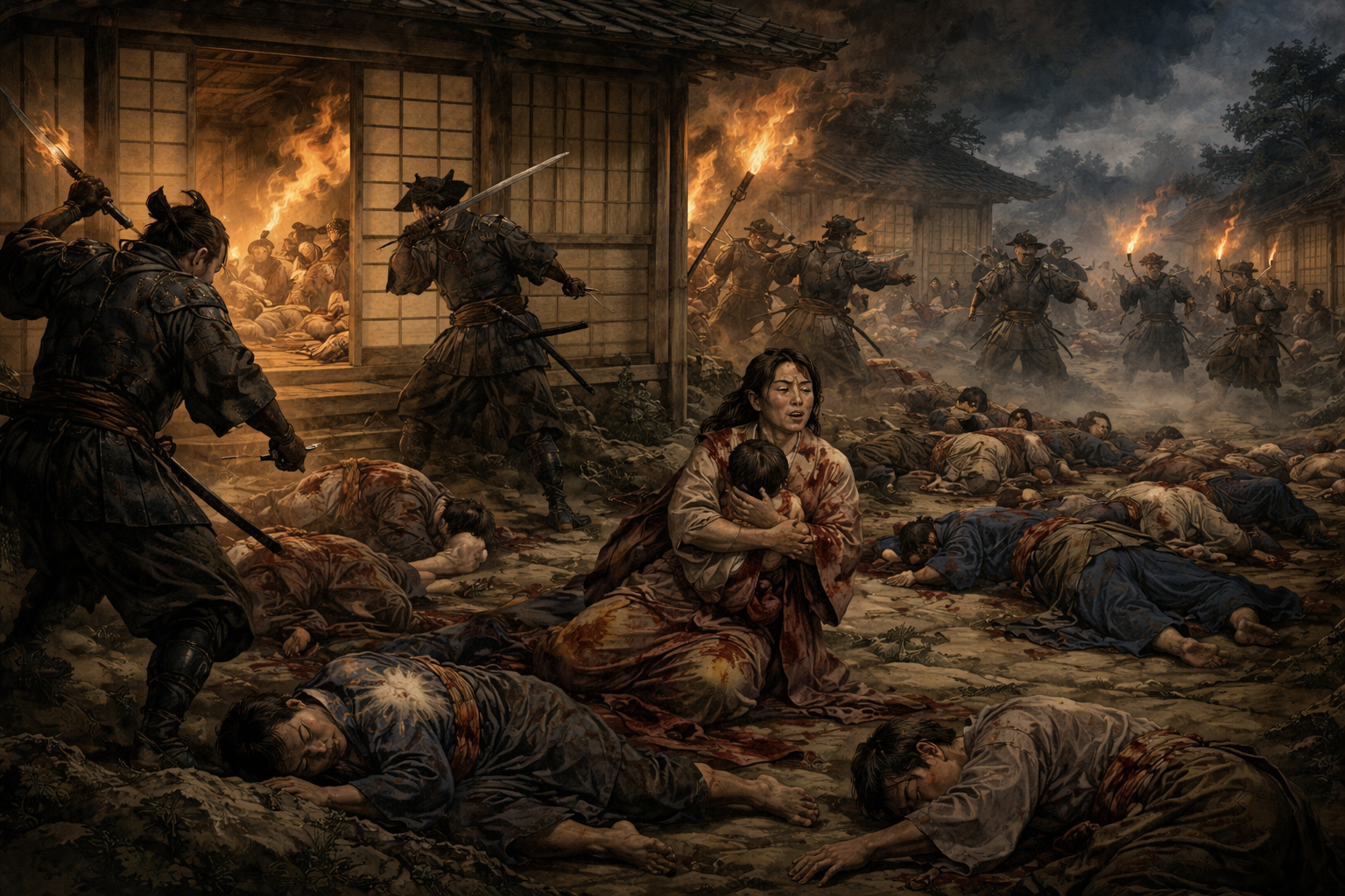法事の最中に2人の侍が乱入して一族約70人を惨殺した事件