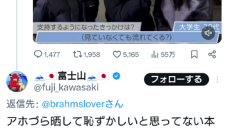 高市総理を支持する若者について前川喜平氏「アホづらをさらしても恥ずかしいとも思わない本物のアホ」 Twitter Facebook はてブ LINE コピー 2026.03.05 スポンサーリンク 1:2026/03/05(木) 09:31:08.39 ID:b4Uw0WWB0前川喜平よ鏡を見なさいそこに本物のアホがいる https://t.co/cJmff7U4Tm— 鐵砲屋の倅 (@segare_teppouya) March 4, 2026転載元スレッド:https://hayabusa3.2ch.sc/test/read.cgi/news/1772670668/ 続きを読む