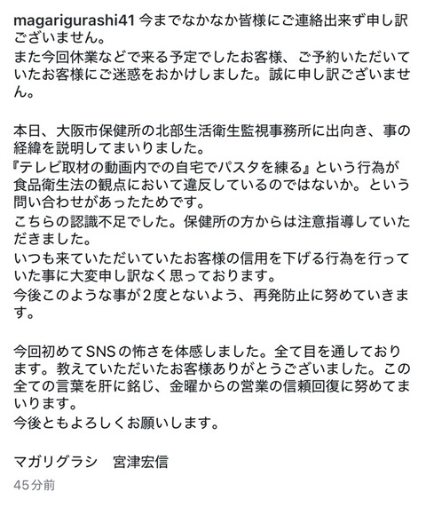 【速報】食品衛生法違反をテレビで堂々と放送した飲食店、謝罪「認識不足でした」 (※画像あり) Twitter Facebook はてブ LINE コピー 2026.03.05 スポンサーリンク 1:それでも動く名無し:2026/03/04(水) 20:13:52.98 ID:aw3qGWM/0.net ええ… 2:それでも動く名無し:2026/03/04(水) 20:15:12.03 ID:48d68U730.net SNSの怖さw 続きを読む
