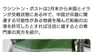 ワシントン・ポストは2月末から米国とイランが交戦状態にある中で、中国が兵器に関連する可能性がある物資を積んだ船舶の出港を許可したとすれば注目に値するとの専門家の見方を紹介。