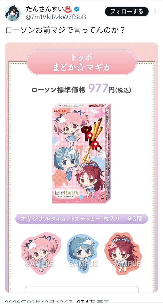 【画像】トッポ、限界突破wwwwwwwwwwwwwwwwwwwwwwwwwwwwwwwwwwwwwwwwwwwwwwwwwwwwwwwwwwwwwww Twitter Facebook はてブ LINE コピー 2026.03.10 スポンサーリンク 1 : 以下、?ちゃんねるからVIPがお送りします :2026/03/10(火) 18:59:53.282 ID:vkZNFW5f0.netオリジナルフード|『劇場版 魔法少女まどか☆マギカ〈ワルプルギスの廻天〉』キャンペーン|ローソン研究所https://www.lawson.co.jp/lab/campaign/madoka_magica/food.html2 : 以下、?ちゃんねるからVIPがお送りします :2026/03/10(火) 19:00:11.443 ID:vkZNFW5f0.netやっばwwwwwwwwwwwwwwwwwwwwwwwwwwwwwwwwwww転載元スレッド:https://viper.2ch.sc/test/read.cgi/news4vip/1773136793/ 続きを読む
