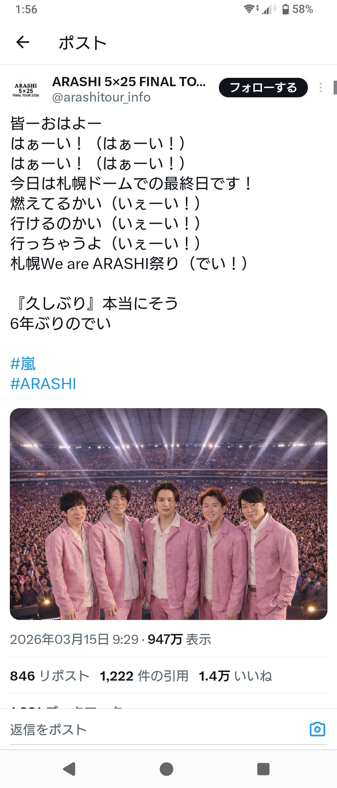 — ARASHI 5×25 FINAL TOUR 2026 (@arashitour_info) March 15, 2026
