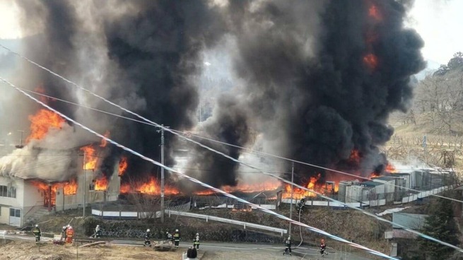 プラスチックの「色戻し」作業で大規模火災 ”バーナーで炙る”ネットで話題の裏ワザが原因か 大量の仮設トイレと住宅が燃える(山形・大江町)