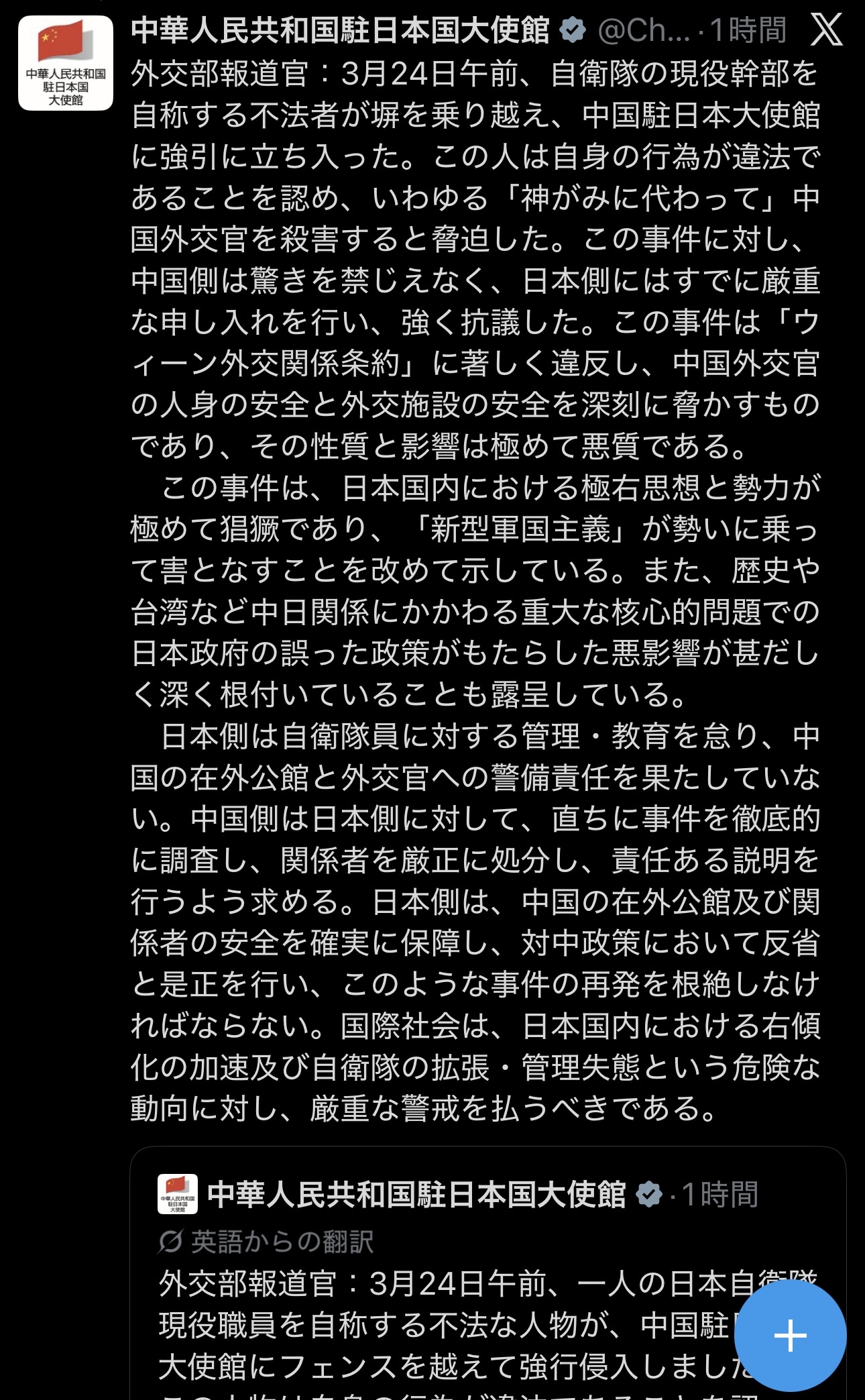 https://x.com/chnembassy_jp/status/2036359640896901526