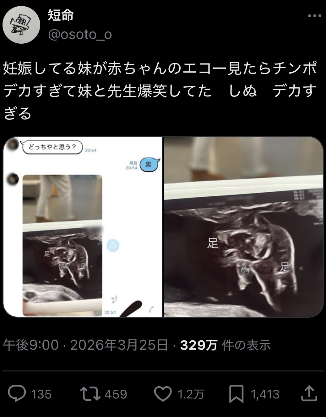 【悲報】男性器がデカすぎる赤ちゃんさん、医者から爆笑される (※画像あり) Twitter Facebook はてブ LINE コピー 2026.03.27 スポンサーリンク 1:それでも動く名無し:2026/03/26(木) 10:24:50.80 ID:KiCA5HBWd.net 2:それでも動く名無し:2026/03/26(木) 10:26:53.06 ID:mZ513g3o0.net よくわからん 続きを読む