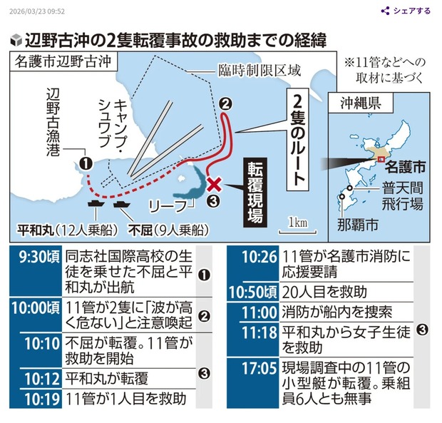 沖縄県:辺野古沖の船転覆事故1週間、「なぜ船を出したのか」地元では波がうねる危険な海域として知られていた : 読売新聞