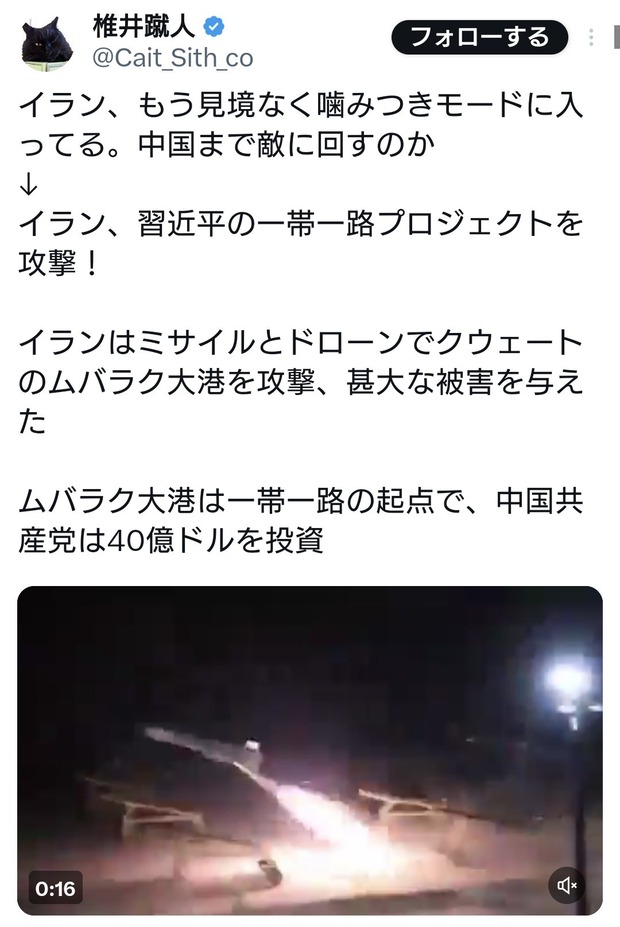 イラン、もう見境なく噛みつきモードに入ってる。中国まで敵に回すのか