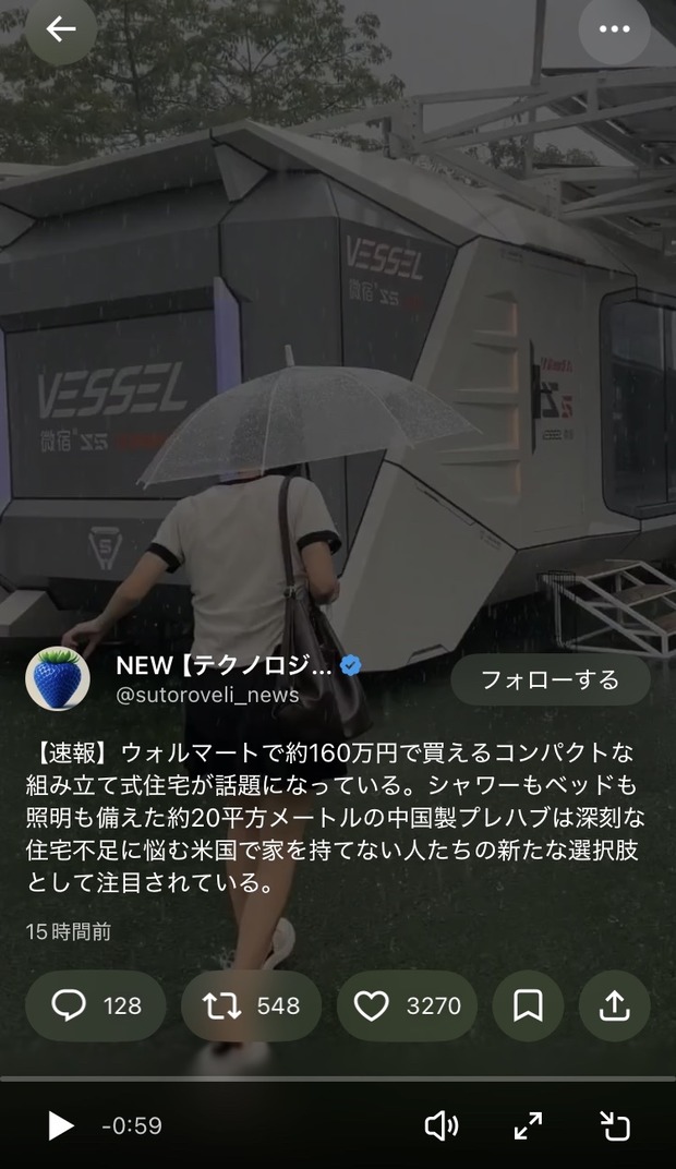 【動画】もうこの家(160万円)でよくないか Twitter Facebook はてブ LINE コピー 2026.03.30 スポンサーリンク 1 : 以下、?ちゃんねるからVIPがお送りします :2026/03/28(土) 11:05:31.402 ID:zQFo96GT0.net ビデオhttps://video.twimg.com/ext_tw_video/1953887635862388736/pu/vid/avc1/720x1280/JhZqFtzXVNINVuSt.mp4?tag=12転載元スレッド:https://viper.2ch.sc/test/read.cgi/news4vip/1774663531/ 続きを読む