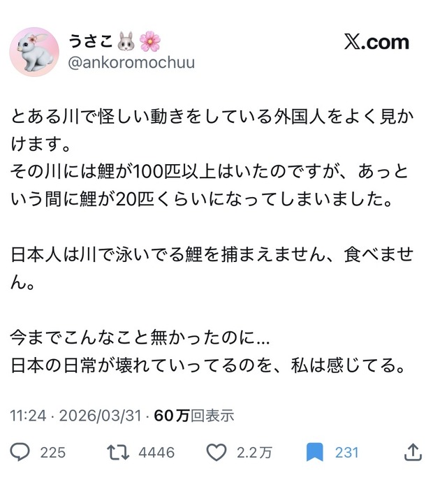 — うさこ🐰🌸 (@ankoromochuu) March 31, 2026