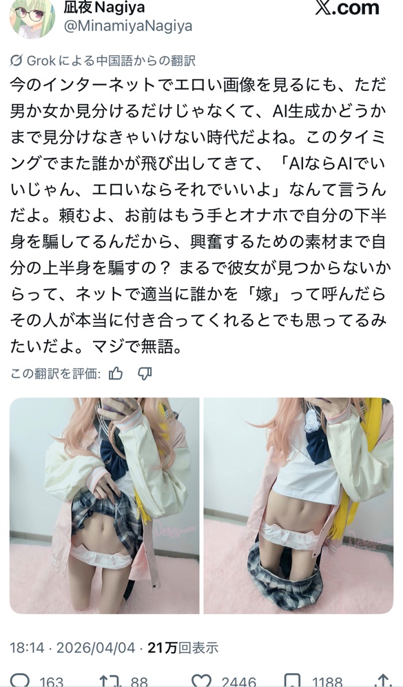 【朗報】中国人まんさん、お気持ちとともにあたシコ画像wwwwwwwww Twitter Facebook はてブ LINE コピー 2026.04.06 スポンサーリンク 1:以下、?ちゃんねるからVIPがお送りします:2026/04/05(日) 11:30:50.709 ID:1CM1qVTs0.net 2:千晴:2026/04/05(日) 11:31:03.683 ID:fZvtlc0r0.net ババアじゃん 4:以下、?ちゃんねるからVIPがお送りします:2026/04/05(日) 11:31:27.754 ID:d5ZNpcjL0.net 男じゃん 続きを読む