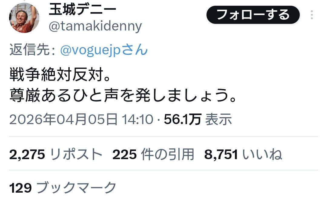 沖縄の玉城デニー知事、辺野古事故後の最初のX書き込みがこちら Twitter Facebook はてブ LINE コピー 2026.04.07 スポンサーリンク 1: 宇宙定数(東京都) [ニダ] 2026/04/07(火) 07:59:36.62 ID:Q8VQyQyl0● BE:662593167-2BP(2000) 続きを読む