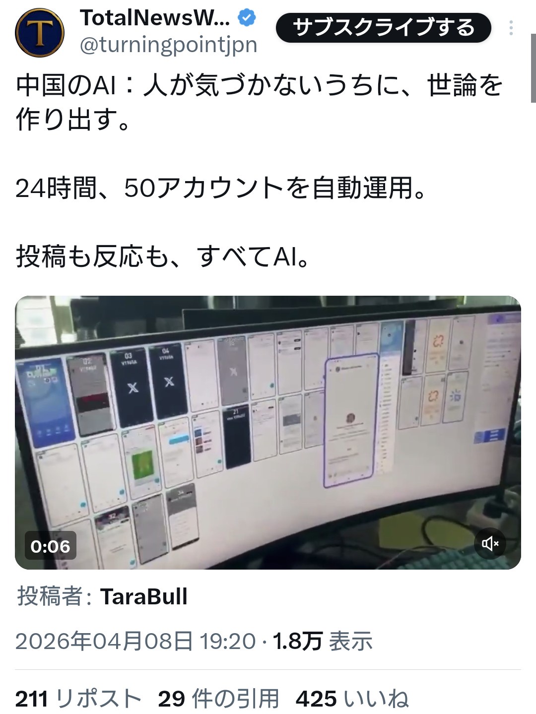 投稿も反応も、すべてAI。pic.twitter.com/s2Dkz0r44y