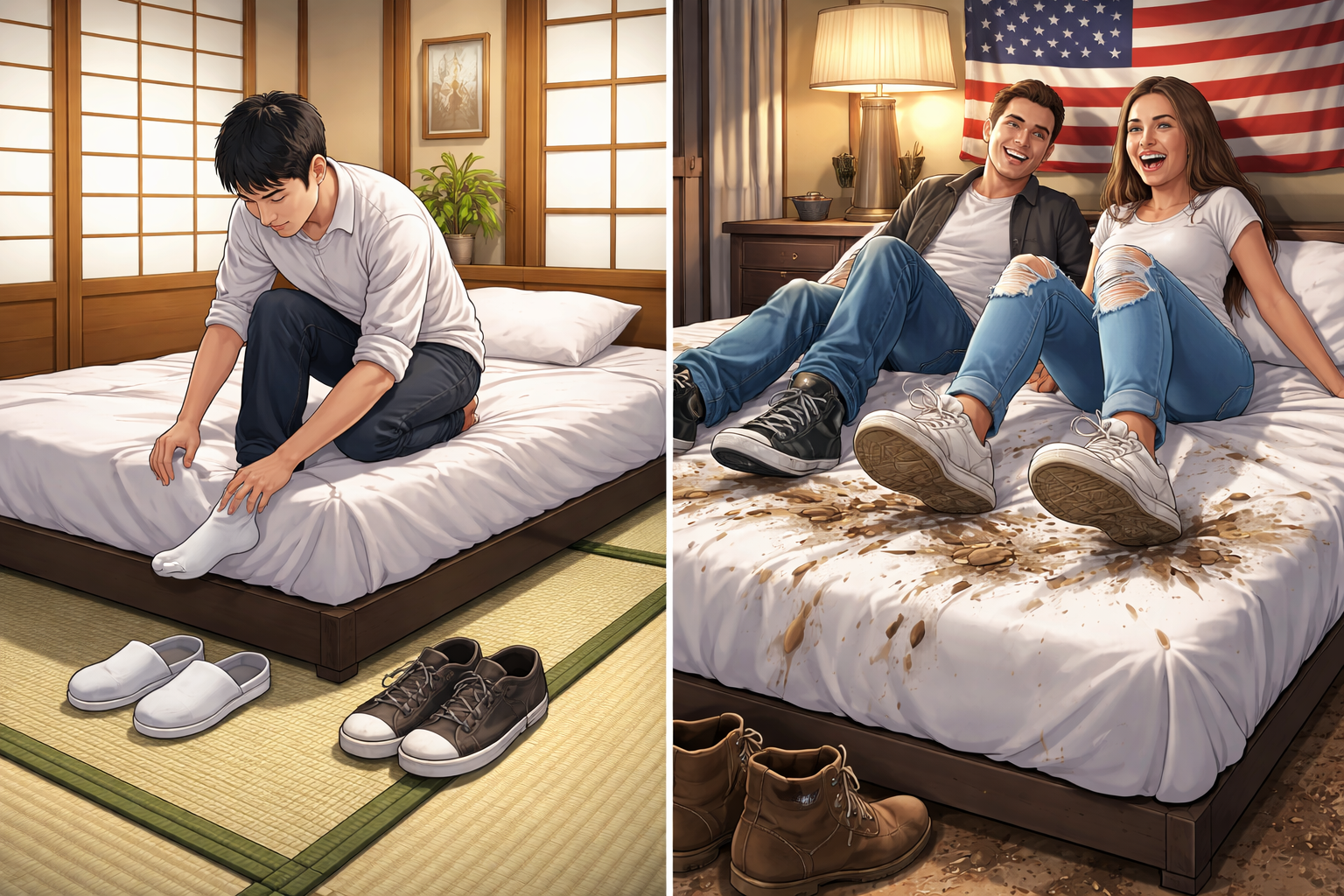【文化差】日本「靴は脱げ」海外「そのままベッドOK」←これマジで汚くないの?www