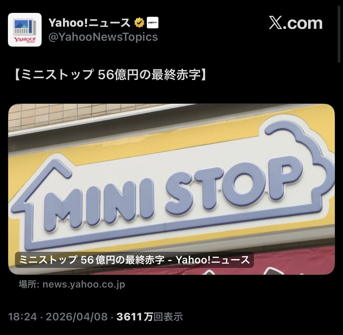 【ミニストップ 56億円の最終赤字】https://t.co/z4OhU4gDl3