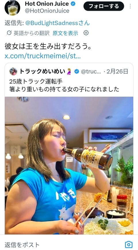 【画像】日本のトラック女子、アメリカ人にモテモテ Twitter Facebook はてブ LINE コピー 2026.04.13 スポンサーリンク 1:以下、?ちゃんねるからVIPがお送りします:2026/04/12(日) 21:16:49.436 ID:kYsXpLipM.net これはわかる 続きを読む