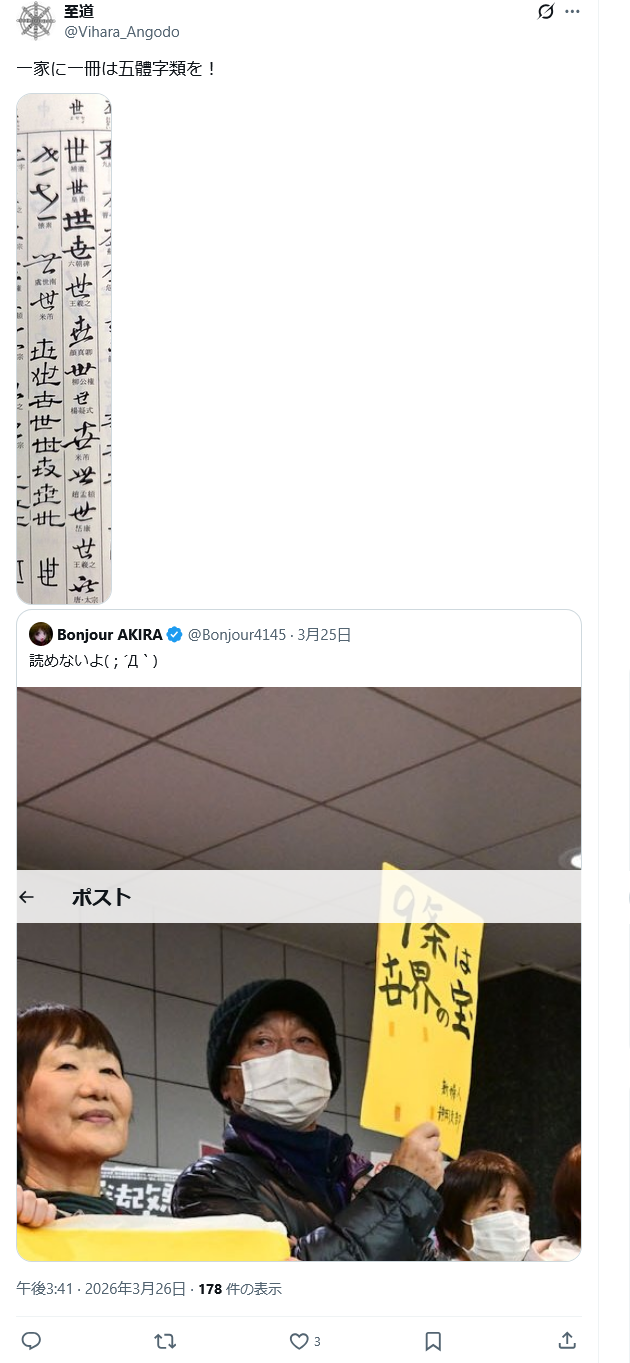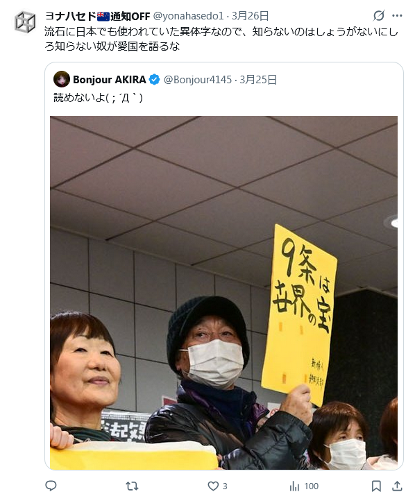 【悲報】普通の日本人さん「デモ隊のプラカードの字がおかしい!こいつ特亜だろ!!」→結果wwwww😂 Twitter Facebook はてブ LINE コピー 2026.04.13 スポンサーリンク 1 : 以下、?ちゃんねるからVIPがお送りします :2026/04/12(日) 18:55:30.334 ID:gW/XmsVo0.net↓案の定バカにされまくるww転載元スレッド:https://viper.2ch.sc/test/read.cgi/news4vip/1775987730/ 続きを読む