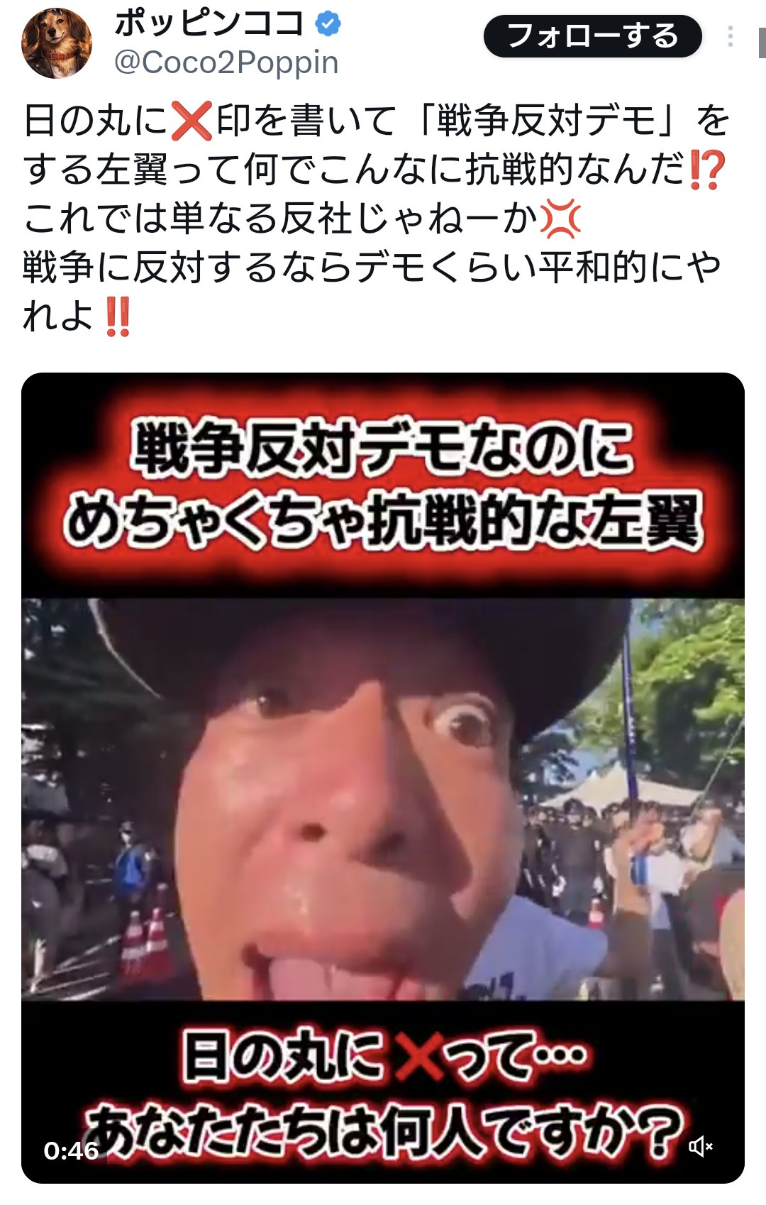 日の丸に❌印を書いて「戦争反対デモ」をする左翼って何でこんなに抗戦的なんだ⁉️