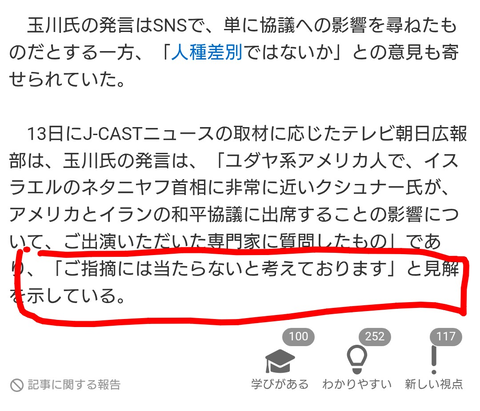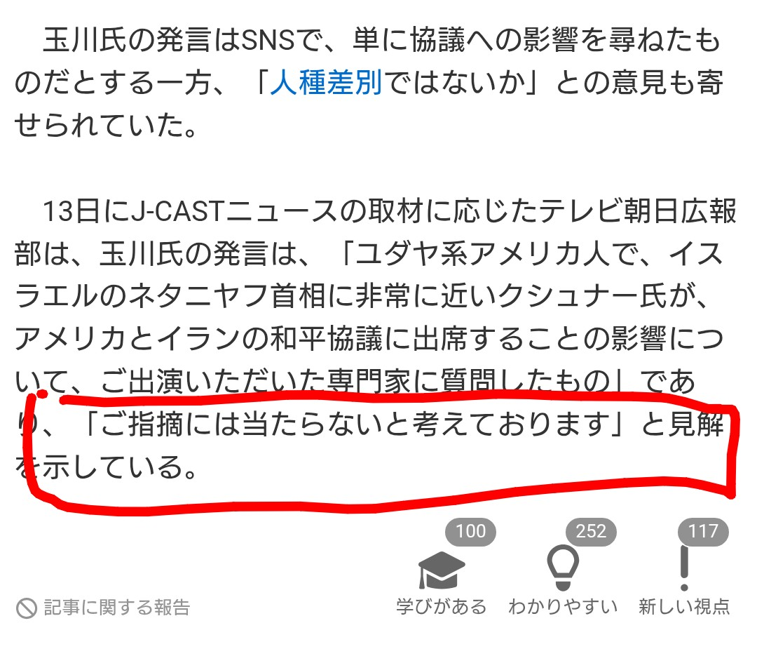 先日放送された『モーニングショー』の番組内において、玉川徹氏が、ジャレッド・クシュナー氏はユダヤ人であるという理由で外交交渉から排除されるべきだと示唆した懸念すべき発言について、テレビ朝日に正式な書簡を送りました。