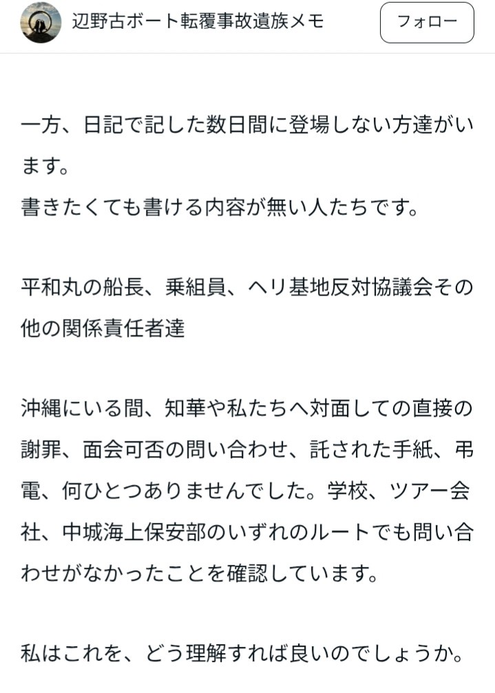 辺野古転覆の遺族、Note更新。これまで未登場だった左翼活動家達がマジで何もしてない事が判明 Twitter Facebook はてブ LINE コピー 2026.04.18 スポンサーリンク 1:それでも動く名無し:2026/04/18(土) 00:12:23.93 ID:gtV9JK9k0 2:それでも動く名無し:2026/04/18(土) 00:13:47.56 ID:5BbjWqk20 左翼って都合が悪くなったら全力で逃げるよね 4:それでも動く名無し:2026/04/18(土) 00:14:23.52 ID:E55LQjUJ0 何が平和活動だよクソ野郎どもが 続きを読む