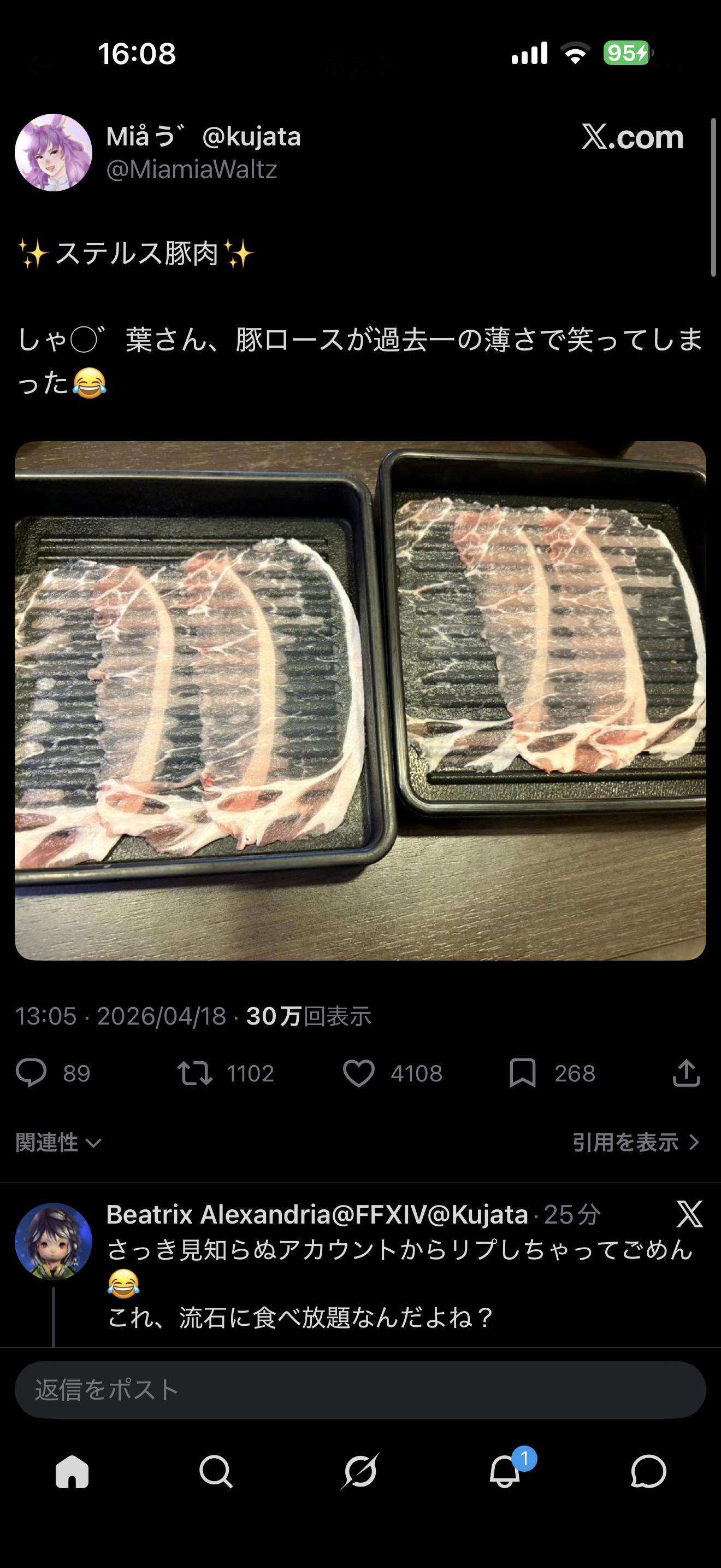 【朗報】しゃぶ葉の薄切り技術、マジで限界突破 Twitter Facebook はてブ LINE コピー 2026.04.19 スポンサーリンク 1 : 以下、?ちゃんねるからVIPがお送りします :2026/04/18(土) 16:19:26.304 ID:YdTYSzpv0.net✨ステルス豚肉✨しゃ◯゛葉さん、豚ロースが過去一の薄さで笑ってしまった😂 pic.twitter.com/lJEihtCWI8— Miaう゛@kujata (@MiamiaWaltz) April 18, 2026職人の技やね転載元スレッド:https://viper.2ch.sc/test/read.cgi/news4vip/1776496766/ 続きを読む