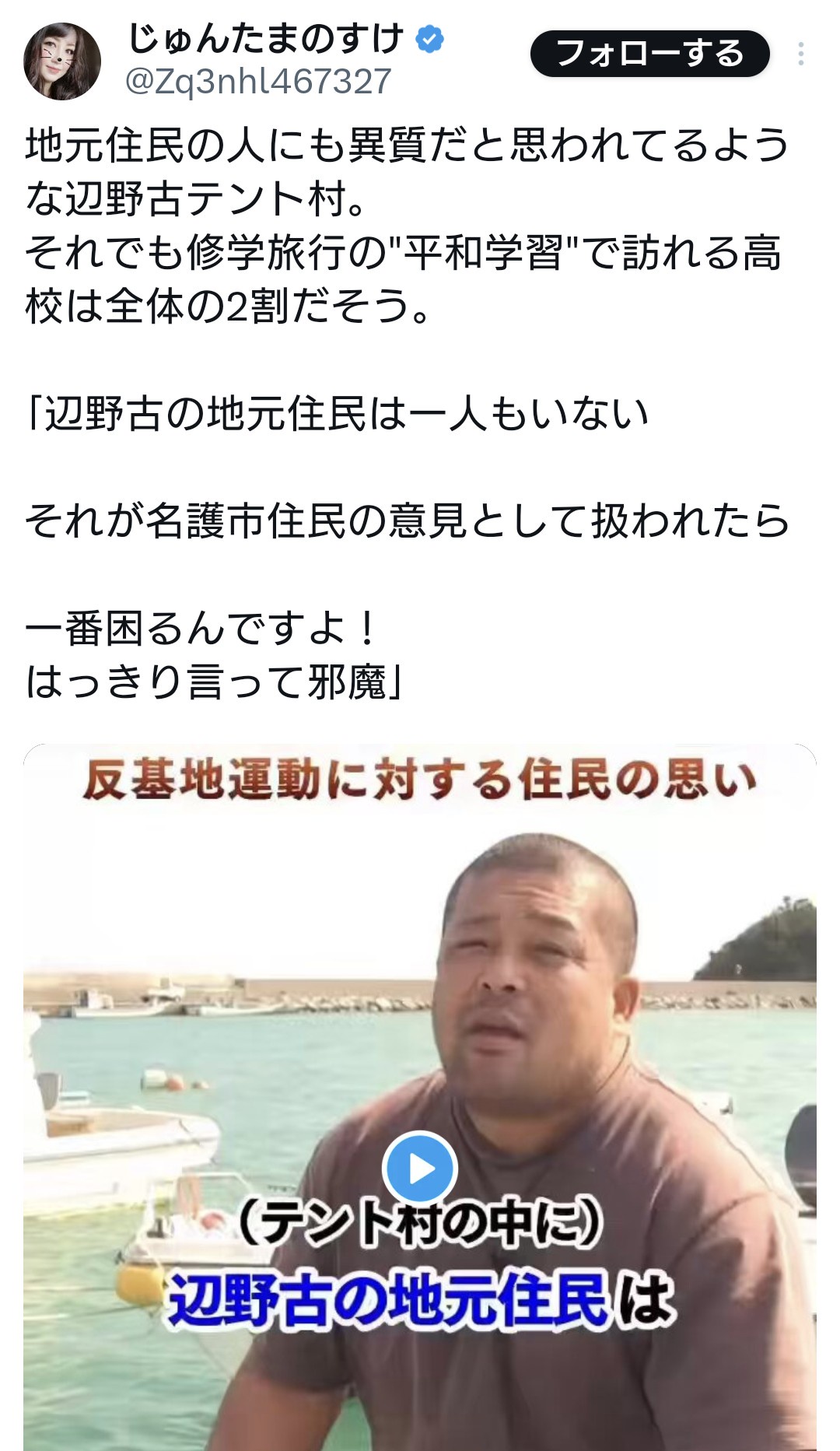 「辺野古の地元住民は一人もいない
