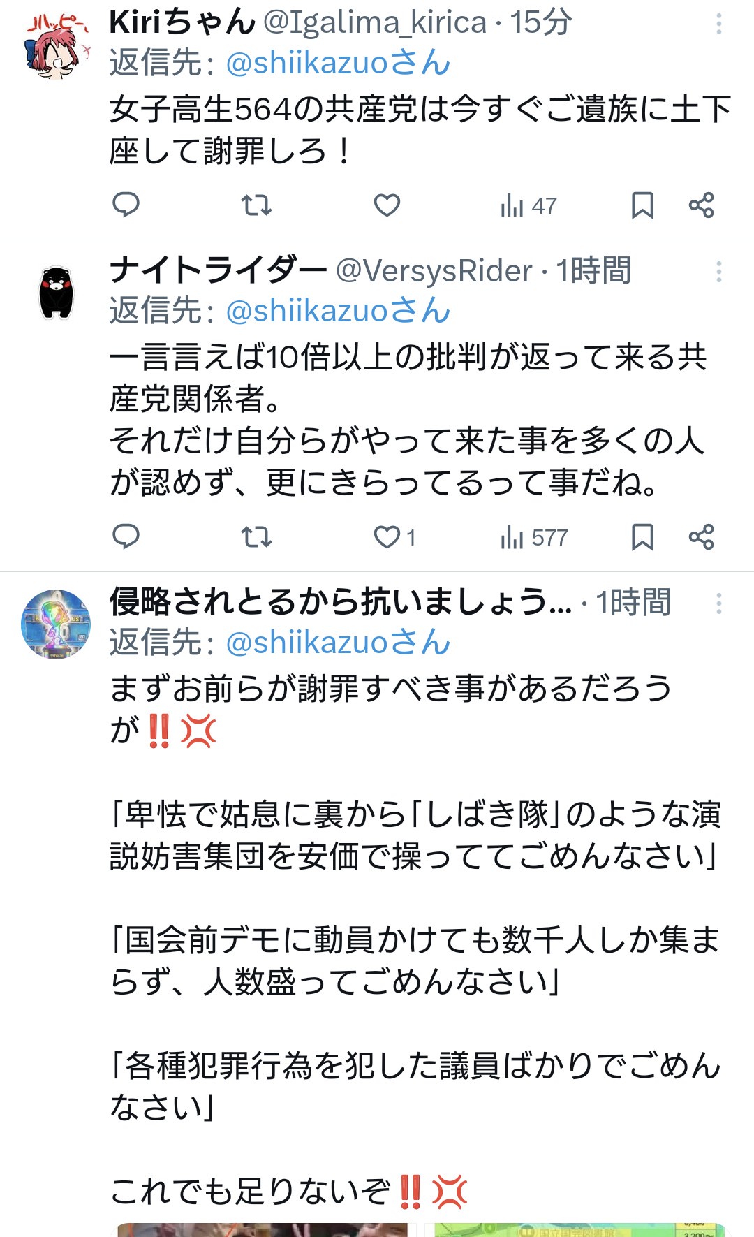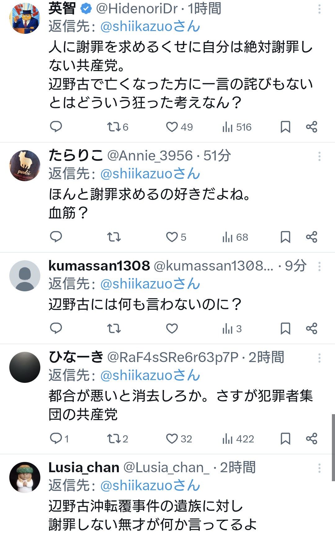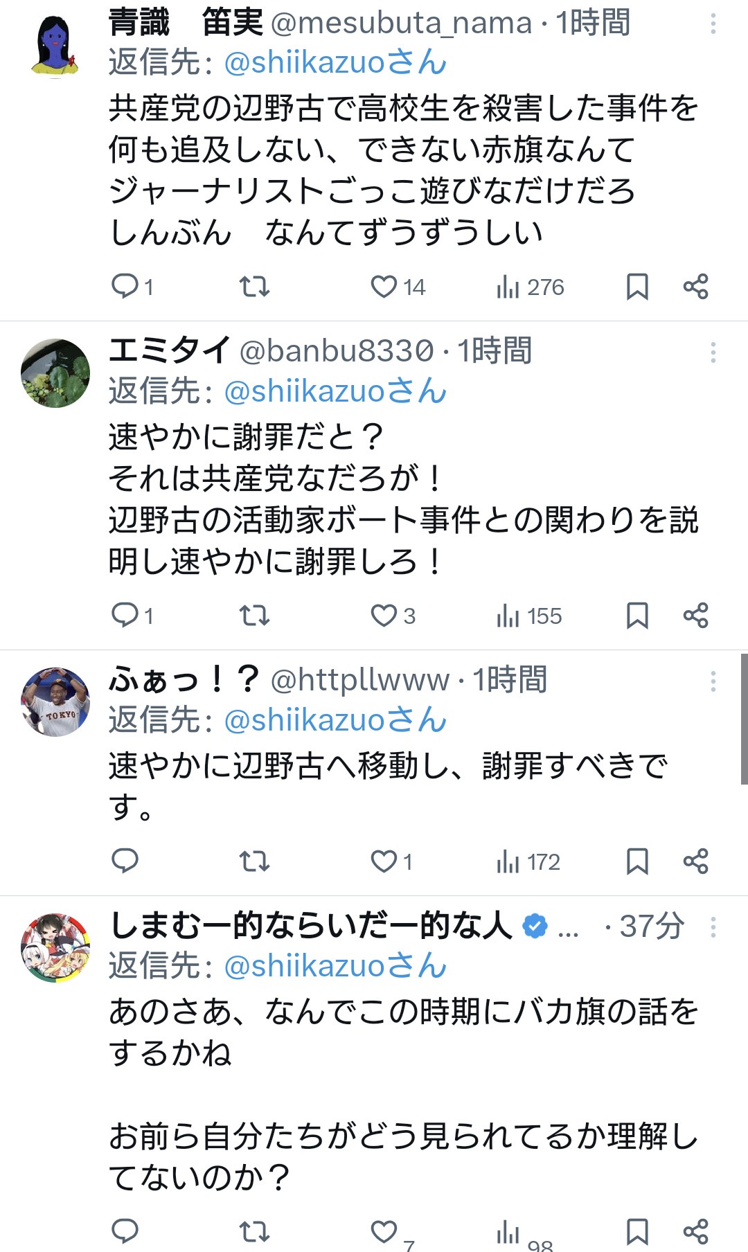 共産党志位氏「日本維新の藤田代表は謝罪すべきです」←お前が先に謝罪しろと総ツッコミ Twitter Facebook はてブ LINE コピー 2026.04.23 スポンサーリンク 2:2026/04/22(水) 22:37:48.64 ID:RBChu2OP0.net速やかに画像を削除し、謝罪すべきです。 https://t.co/H8CYcY01KP— 志位和夫 (@shiikazuo) April 22, 2026↓転載元スレッド:https://hayabusa3.2ch.sc/test/read.cgi/news/1776865025/ 続きを読む