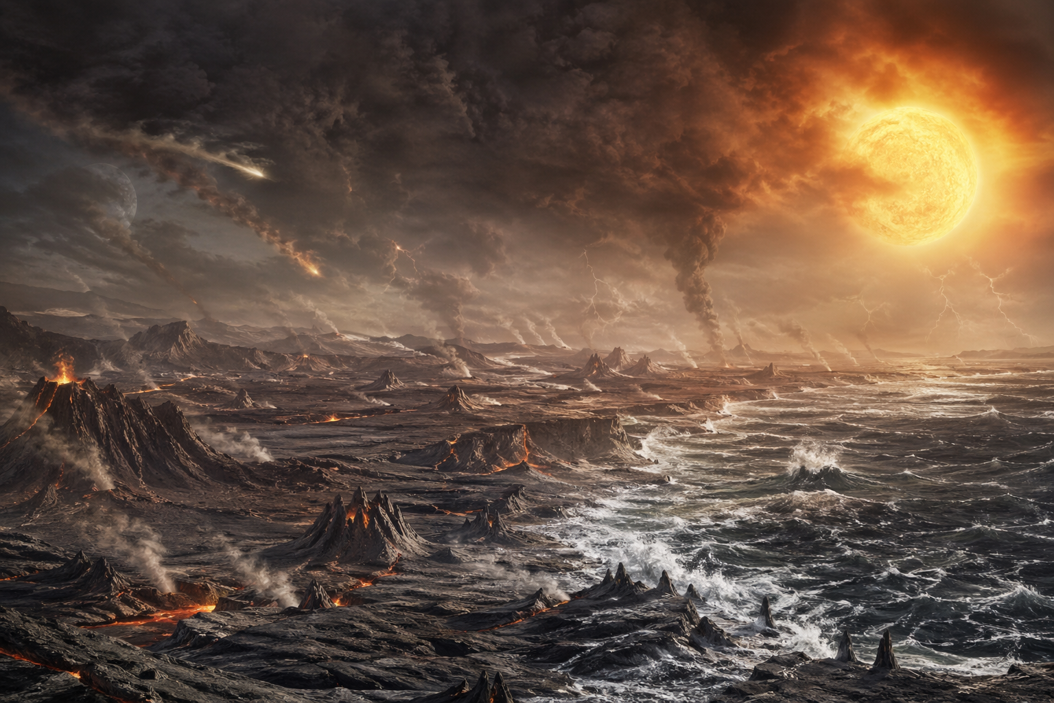 70億年後 地球の地表温度1400℃。山がすべて溶ける。