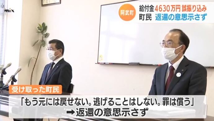 「返還できない、罪は償います・・・」山口県阿武町のコロナ給付金4630万円誤送金・回収困難