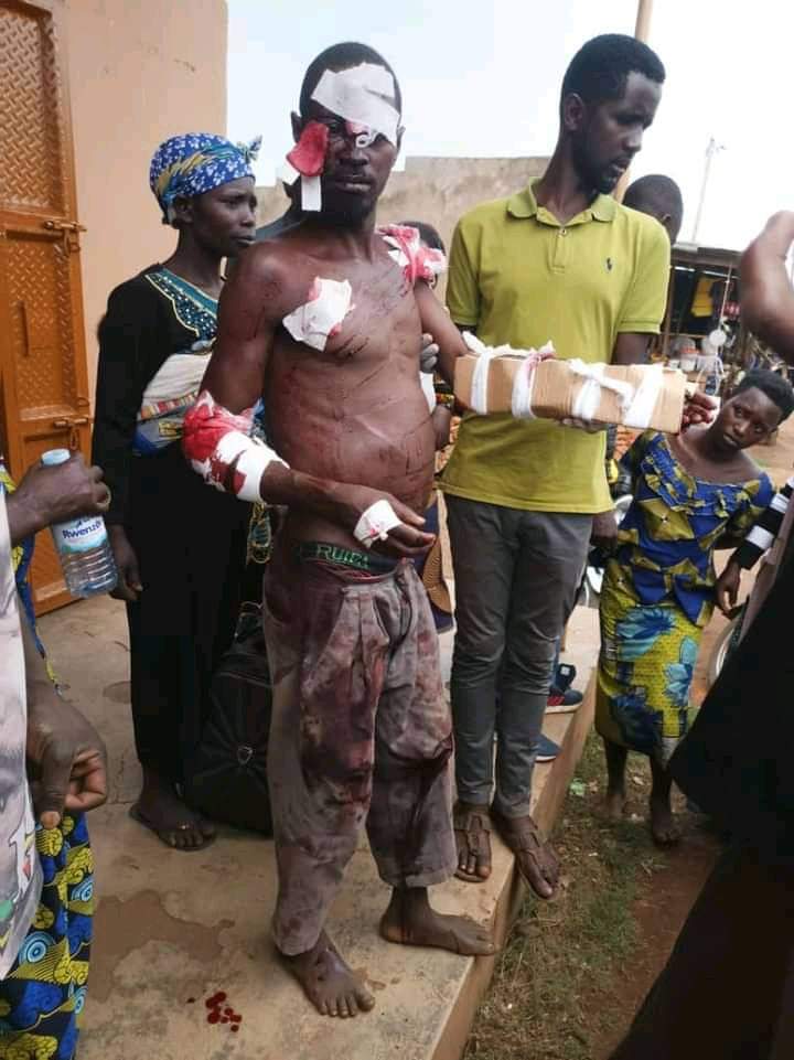 「ウガンダ東部のCMSLガンガ地区の男性は、自宅近くで出会って殺したライオンと戦った後、傷を負っています」と彼は言いました。