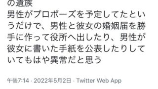 【画像】JAP、知床犠牲者遺族叩き開始 Twitter Facebook はてブ LINE コピー 2022.05.04 スポンサーリンク 1:以下、?ちゃんねるからVIPがお送りします:2022/05/03(火) 18:48:00 2:以下、?ちゃんねるからVIPがお送りします:2022/05/03(火) 18:50:34 いやさすがにドン引きだわ 晒したるなよ 続きを読む
