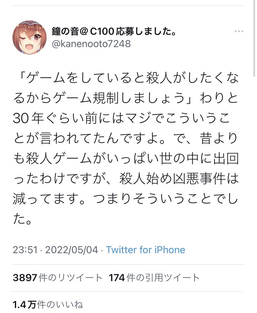 【画像】陰、珍しく正論wwwwwwwwwww Twitter Facebook はてブ LINE コピー 2022.05.05 スポンサーリンク 1:以下、5ちゃんねるからVIPがお送りします:2022/05/05(木) 13:40:59.536 ID:H2eq8uEXd0505 3:以下、5ちゃんねるからVIPがお送りします:2022/05/05(木) 13:42:17.584 ID:izOeT/Pb00505 ゲームは関係ないと思われる ただ単に若い子らには何の情熱もないだけ 4:以下、5ちゃんねるからVIPがお送りします:2022/05/05(木) 13:42:35.571 ID:BsXGxe+y00505 減ったソース出せって返されそう 続きを読む