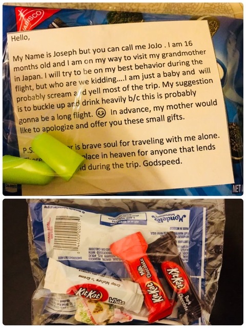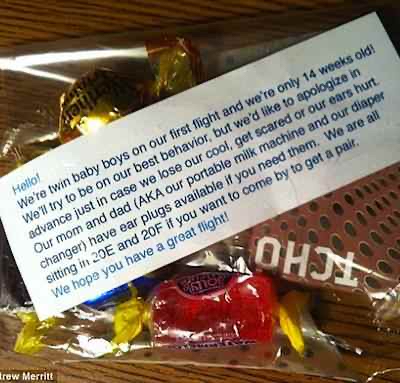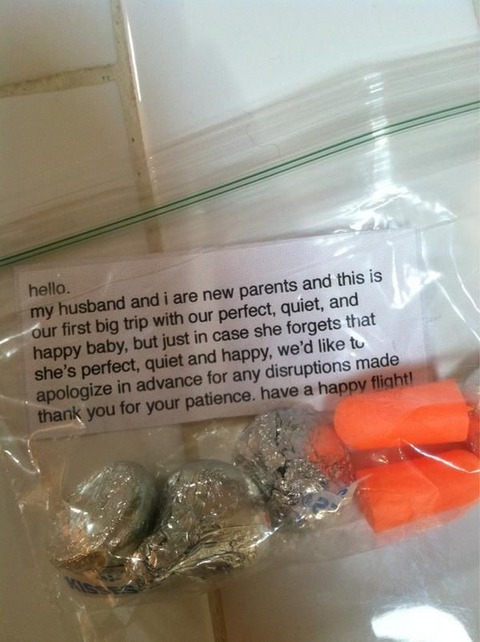 だから飛行機で周囲に迷惑をかける乳児を乗せるときには予め謝罪文とお菓子と耳栓をパックして周囲に配るのがスタンダード