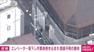 【速報】「人が下敷きに」エレベーター落下し作業員が意識不明