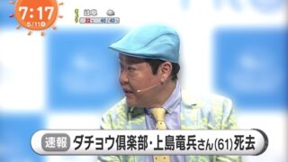 ダチョウ倶楽部のメンバーで、お笑い芸人の上島竜兵さん(61)が、自宅で死亡しているのが見つかった。