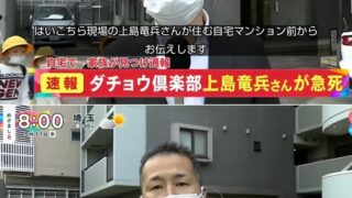 フジテレビ、ネタが入って他局を出し抜こうと慌てて速報うって自殺と明確に死因まで報道して、更には何をトチ狂ったか自宅前中継してしまうも、生出演中の尾木ママに報道姿勢非難されて、徐々に冷静になって自宅前中継は中途半端に打ち切られた模様