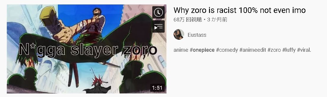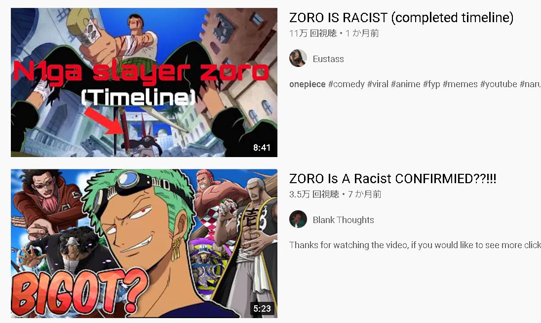 【悲報】ゾロ、黒人狩りのゾロだったと海外で話題になってしまうwwwwwwww Twitter Facebook はてブ LINE コピー 2022.05.16 スポンサーリンク 1:風吹けば名無し:2022/05/16(月) 16:42:27 3:風吹けば名無し:2022/05/16(月) 16:43:02 ニガースレイヤーで草 4:風吹けば名無し:2022/05/16(月) 16:43:10 ネコ兄弟とかタコとか倒してるやん 5:風吹けば名無し:2022/05/16(月) 16:43:23 >>4 それ黄色人種じゃん 22:風吹けば名無し:2022/05/16(月) 16:46:18 >>5 だから黒人だけを狩ってる訳ではないって話だろ 続きを読む