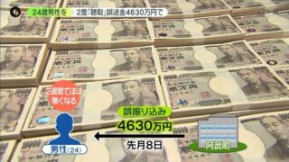 番組では、山口県阿武町が誤って振り込んだ新型コロナ対策の臨時特別給付金4630万円の一部を使用したとして、電子計算機使用詐欺容疑で無職田口翔容疑者(24)が逮捕された事件を報じた。